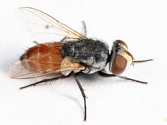 As usual, "Bug Eric" Eaton adds some interesting details.  The satellite flies are in the "Flesh Fly" family, Sarcophagidae.  Senotainia vigilans is a common suspect and the pictures by Tom Murray are to good to pass up.  It looks a Diptera's version of Frankenstein with the two halves of the head sewn together.  Some things you just can't make up.